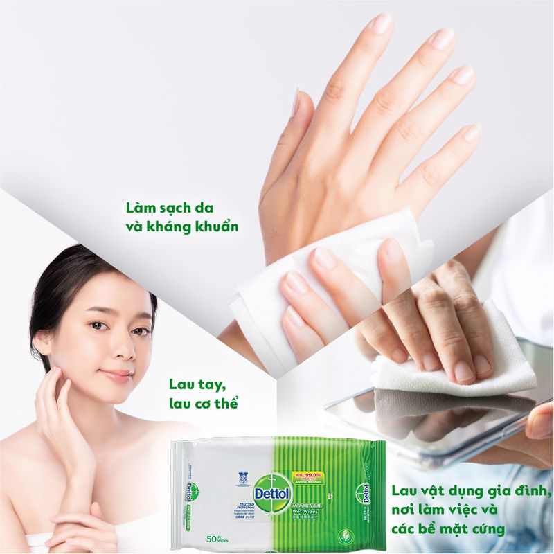 Khăn ướt Dettol sẽ giúp bạn nhanh chóng vệ sinh, khử trùng các bề mặt đồ vật trong gia đình để mang đến không gian sống an toàn, được bảo vệ khỏi vi khuẩn.